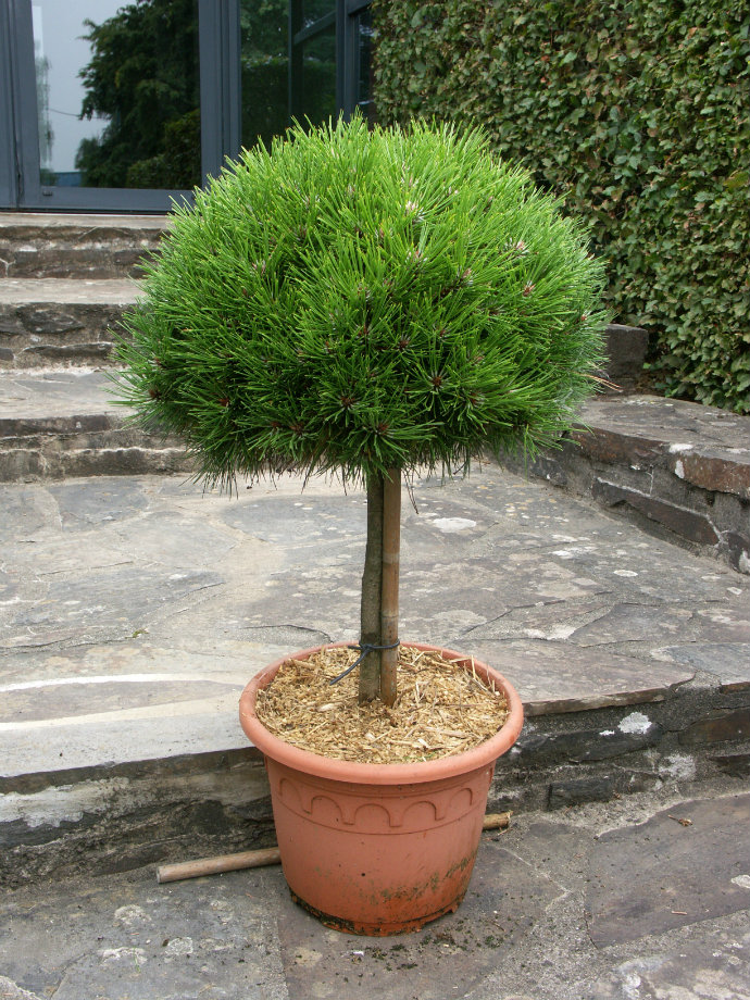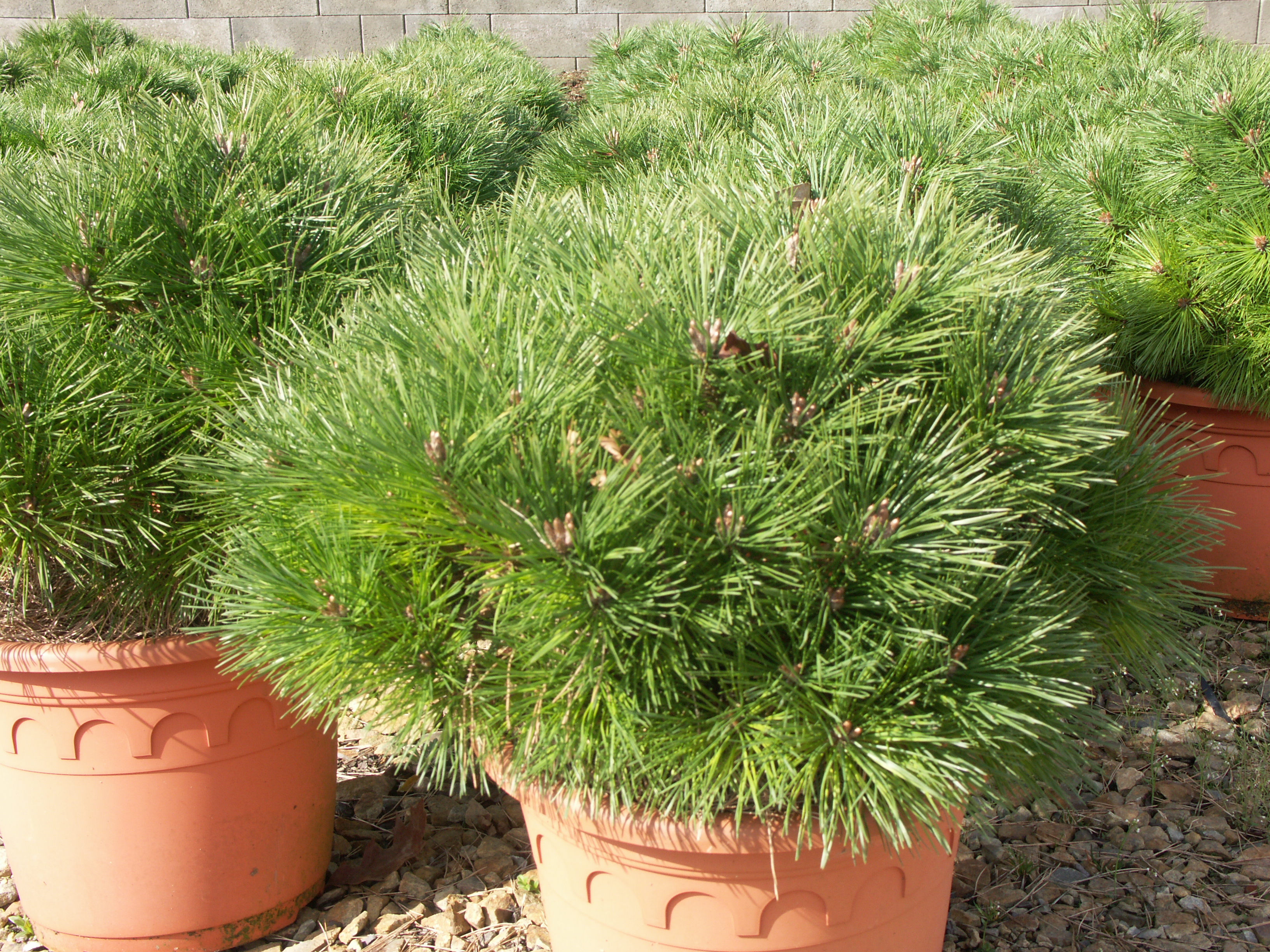 Originaires de croisements avec Pinus nigra, ces pins à deux aiguilles sont remarquables pour leur port arrondi très régulier et leur croissance modérée.